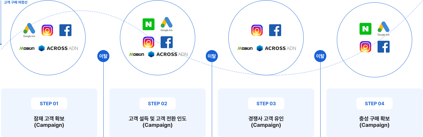 광고 매체 뿐만이 아닌 마케팅 전방위적 자산을 활용하여 고객을 고려한 C.I Funnel 전략입니다.