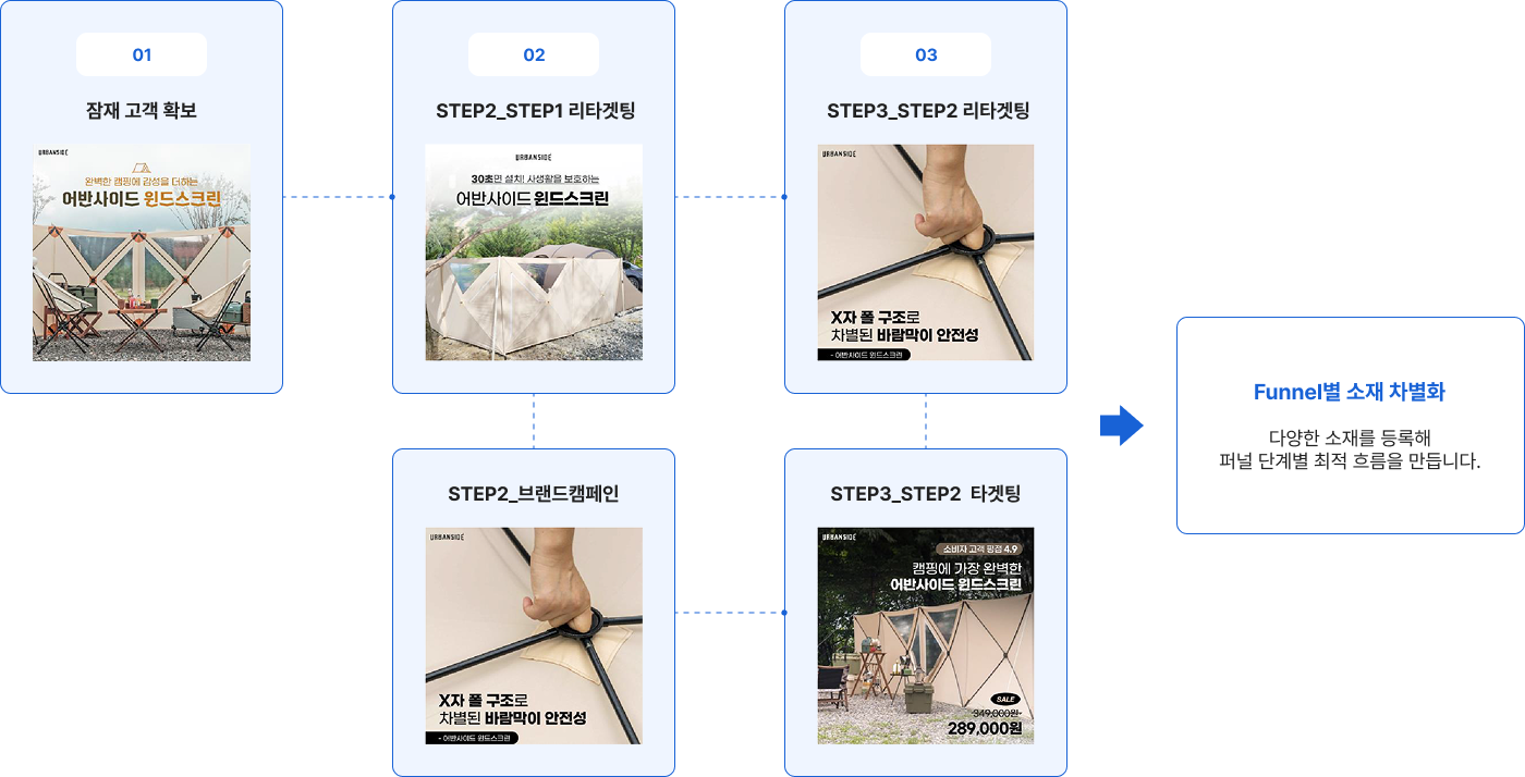 전환 퍼널에 따라 맞추고, 테스트를 거쳐 끝까지 다듬습니다.